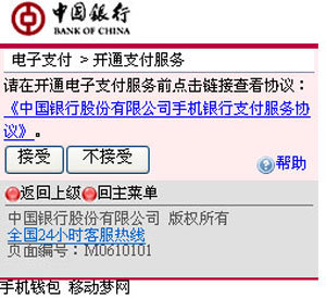 閱讀手機支付服務協議,如同意,點擊“接受”(圖7)。