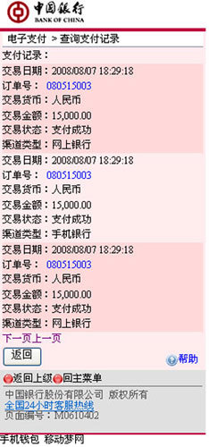 輸入起始及截止日期進行手機支付記錄查詢,可查詢該時間段內的支付記錄(圖18)。