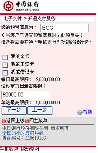 在您使用中行手機支付前,您需要先開通手機銀行理財版或貴賓版。手機銀行開通時需使用一張長城電子借記卡,您可選擇已有的借記卡來開通手機銀行,也可選擇到柜臺申請新的借記卡并開通手機銀行。
