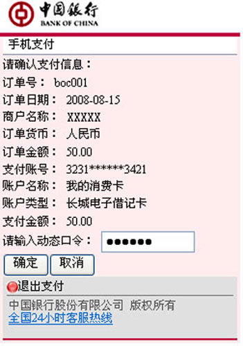 確認支付信息無誤后,輸入動態口令,點擊“確定”(圖15)。